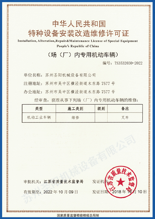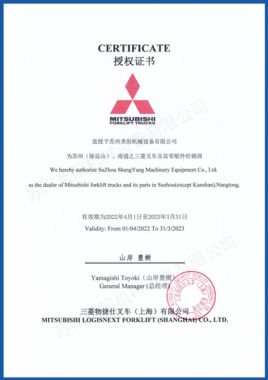 蘇州圣陽(yáng)機(jī)械設(shè)備有限公司是一家專(zhuān)業(yè)從事叉車(chē)銷(xiāo)售,租賃和維修等服務(wù)的物流倉(cāng)儲(chǔ)設(shè)備供應(yīng)商,成立于2009年2月23日。是三菱叉車(chē)授權(quán)的一級(jí)代理商。