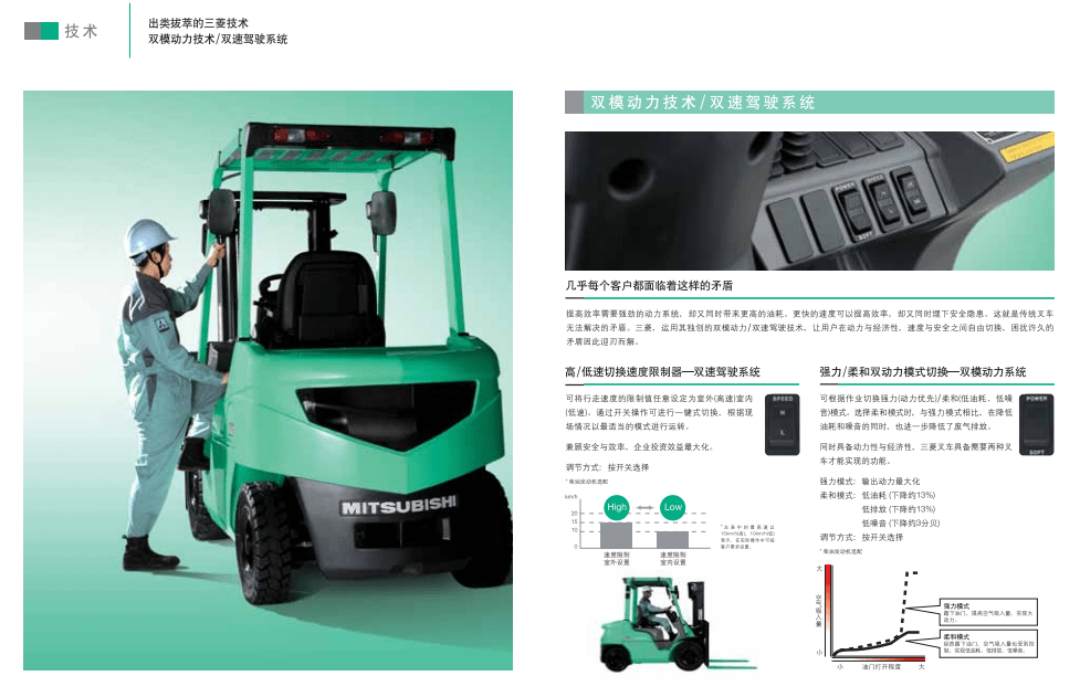 三菱叉車 GRENDIA FD叉車 FN叉車 雙模動力技術(shù)/雙速駕駛系統(tǒng)