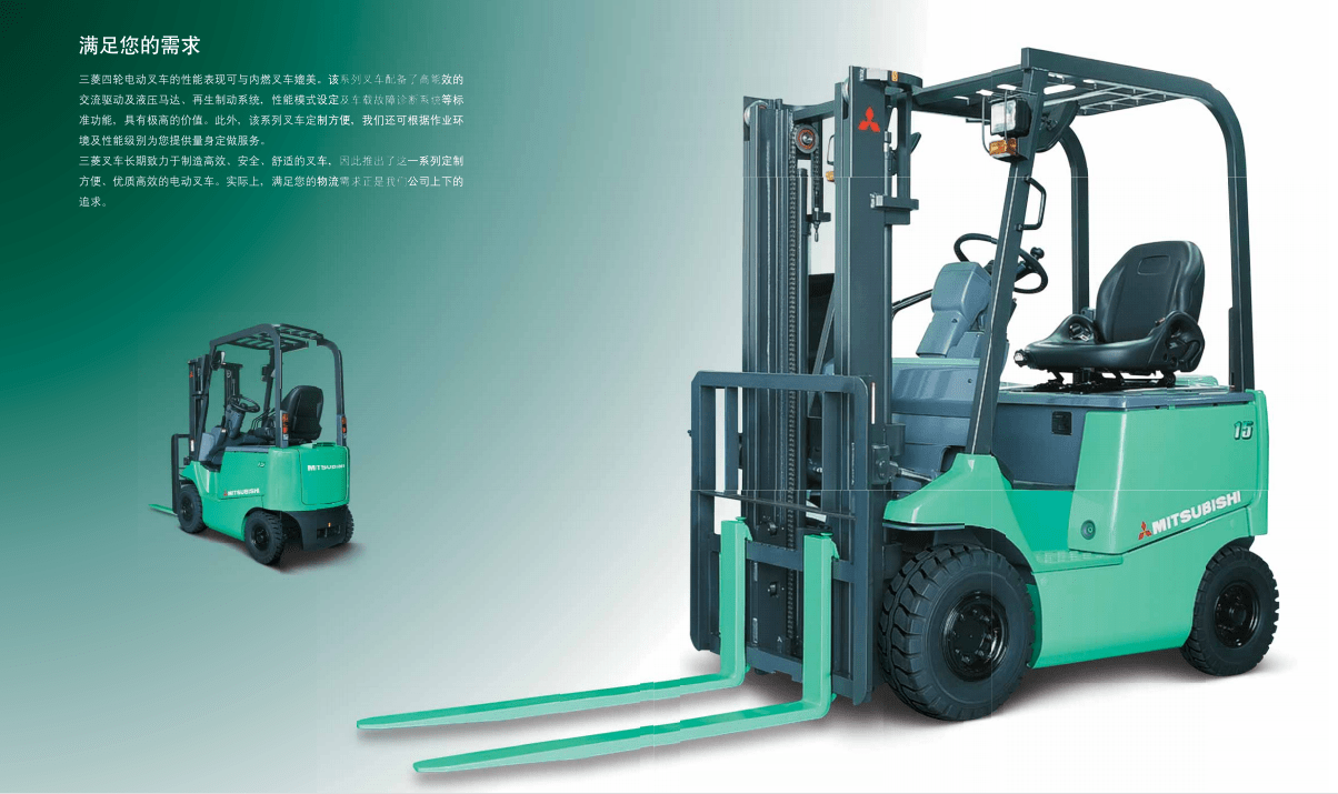 轉(zhuǎn)彎半徑FB系列叉車的體積比傳統(tǒng)型叉車更小,具有更小的最小轉(zhuǎn)彎半徑,因此可在狹小的空間進行操作。由于配備了速度感應式電動助力轉(zhuǎn)向系統(tǒng)((SEPS),叉車在低速行駛時可輕松轉(zhuǎn)彎。交流電三菱叉車的操作系統(tǒng)采用了交流電技術(shù),因此具有極佳的性能。叉車采用...