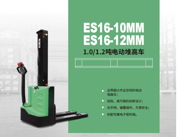 三菱叉車 ES16-10MM 1.0噸電動堆高車車業(yè)界超小作業(yè)空間的電動堆高車;低耗、高可靠的創(chuàng)新設(shè)計;長手柄、偏置操作,方便安全;標(biāo)配專屬電子密碼鎖。高性能,高可靠∶高強度結(jié)構(gòu)設(shè)計;專用驅(qū)動、液壓系統(tǒng),保證整車運行高可靠;低噪低故障液壓站,經(jīng)過多層檢測測試的...